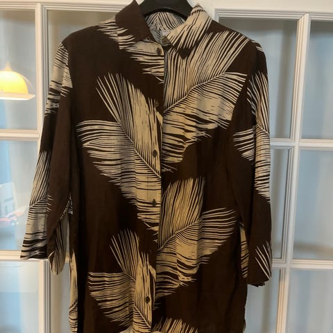 Marimekon beige Kimeeri Solid- neule. Koko M. Väljä malli. Takaa hieman pidempi helma kuin edessä. Halkiot sivuilla.
