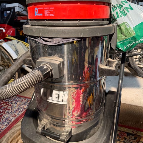 Kuiva ja märkäimuri. Rikkinäinen muoviosat ei haittaa käyttöä. Otettu huomioon hinnassa.