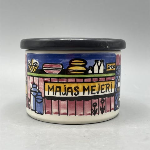 Myydään settinä 2kpl käyttämättömiä Lene Bjerren valko-harmaa kuviollisia keraamisia säilytyspurnukoita. Puukannet. Nouto Espoo Saunalahti, koiratalous