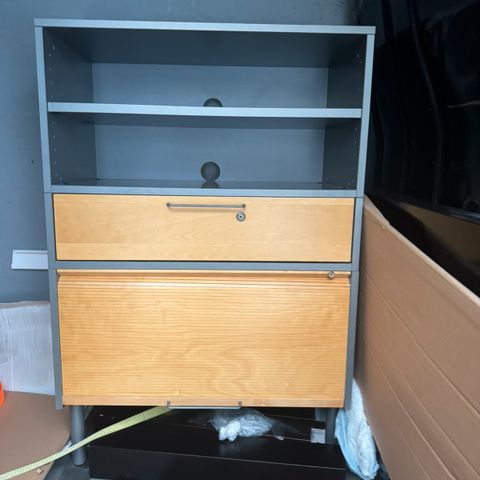 Peltinen atk-kaappi vaikka autotalliin. Näppäintason syvyys 25cm. Myös lisäpala näppäintason sivulle, ei näy kuvissa.