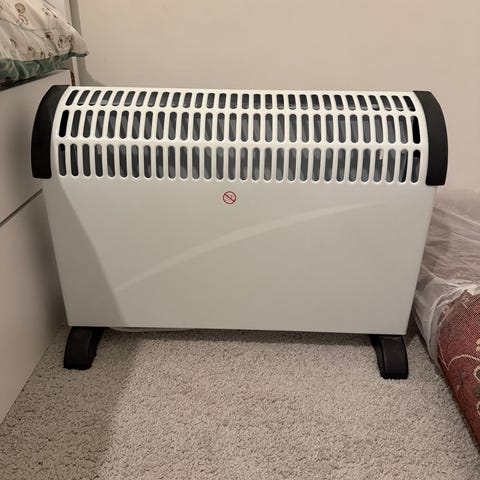 Valkoinen sähkökonvektorilämmitin, tehoportailla 750 W, 1250 W ja 2000 W. Laitteessa on mekaaninen säätönuppi lämpötilan asettamiseen minimi- ja maksimitehon välillä sekä kytkimet eri tehotasoille. Lämmitin on lattiamalli, jossa on tukijalat ja virtajohto. Soveltuu sisätilojen lisälämmittimeksi esimerkiksi huoneisiin tai mökille.