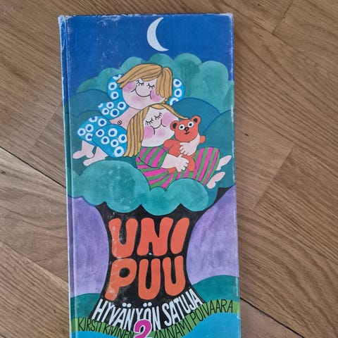 Gummeruksen kustantama Unipuu Hyvän yön satuja 2 -kirja. Paljon luettu. Selkäosa huono, mutta kirja pysyy hyvin kasassa.