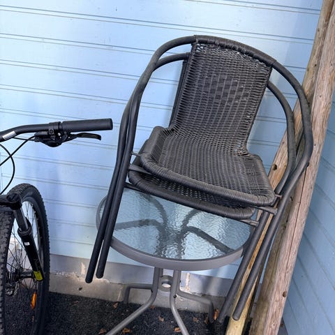 Myydään hyväkuntoinen terassi pöytä, valmistettu polyrottinkista.