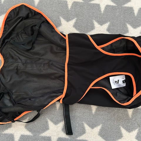 Vain muutamasti käytetty koiran sadetakki koossa 45.