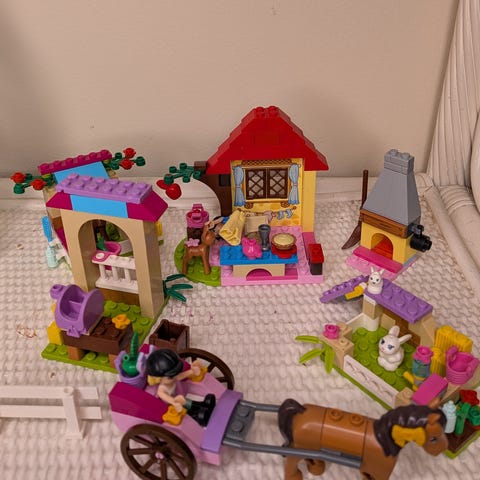 Setistä 41143 puuttuu pieni pala, jonka takia ruskeaa osaa ei voi yhdistää muihin, mutta muut palat tallella ja tuotteet muuten kuin uusia. Mukana ohjeet. Hinta neuvoteltavissa.