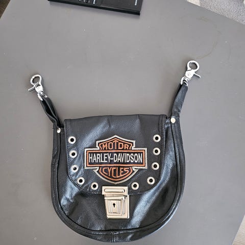 Harley-Davidson musta laukku. Pehmeärakenteinen laukku, jossa vetoketjusuljenta ja solkikiinnitteiset remmit. Laukun sivussa on teksti maksimi kantokuormasta (10 paunaa / 4,5 kg). Sisäpuolella on verkkotasku pientavaroille. Soveltuu esimerkiksi moottoripyörävarusteiden tai muun pientavaran kuljettamiseen ja säilytykseen.