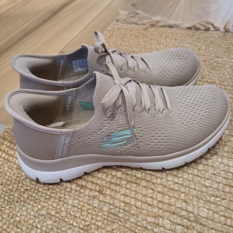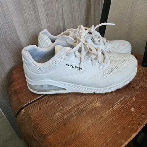 Mustat Skechers tennarit, koko 38. Sisämitta 25cm. Nauhakiinnitys, matala varsi. Erittäin siistit ja vähän käytetyt. Ostettu äskettäin täältä, mutta osoittautuivat harmillisesti pieneksi...siksi vapaana seuraavalle.