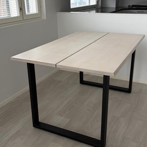 Maskun lankkupöytä 140x95, öljytty tammi & teräsjalat.