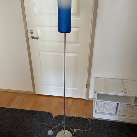 Ikean lasinen "jalka" ja koneisto mihin laitettu vanha lampunvarjostin. Nouto Kaarina.