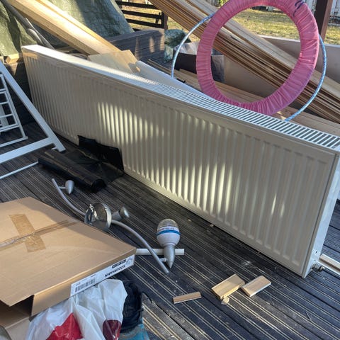 Käytössä ollut vesikiertoinen patteri. Mitat n. 110cm x 45cm