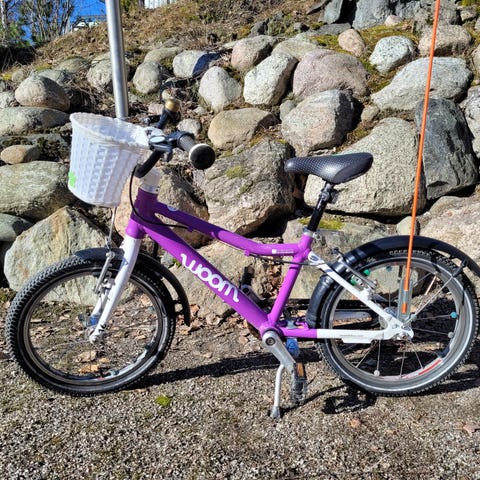 Woom 3 lasten polkupyörä, jossa 16" renkaat. Pyörässä on käsijarrut edessä ja takana, lisävarusteena lokasuojat. Satula ja ohjaustanko ovat säädettävissä, mikä helpottaa koon säätöä lapselle. Myydään suoraan käytöstä, jotain käytön jälkiä löytyy.