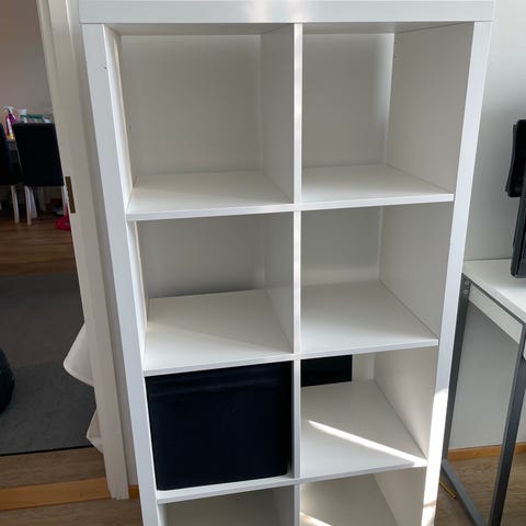 Hyväkuntoinen valkoinen Kallax-hylly.