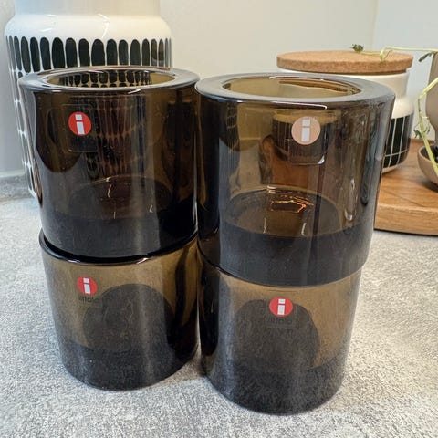 Myydään 4kpl Marimekko logolla olevaa punaista kivi tuikku kynttilänjalkaa ja 2kpl vihreää samoin Marimekko lukee pohjassa. Ei Iittala tarroja jäljellä, mutta hyväkuntoisia kaikki.