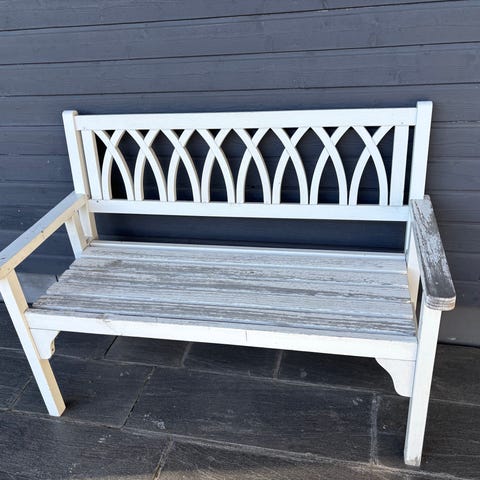 Puutarhapenkki, jossa puinen istuinosa ja selkänoja sekä rautaiset sivut ja jalat. Selkänojassa on ristikkokuvioinen rautapaneeli. Penkki soveltuu ulkokäyttöön terassille, parvekkeelle tai puutarhaan.