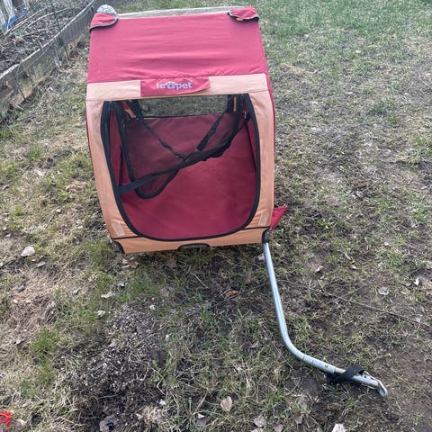 Petstro koirakärry pöydällä. Koko ”vanhanmallin” XL. Ollut käytössä noin viidellä näyttelyreissulla, joten kunto erinomainen. Säilytetty sisällä ja saa kätevästi kasaan. Mukana uusi sadesuojus. Nouto lähtökohtaisesti Oulusta.