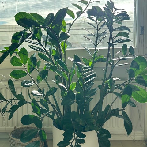 Isokokoinen palmuvehka, jossa on tummanvihreät, vahapintaiset lehdet ja useita versoja. Kasvi on istutettu valkoiseen, sylinterinmuotoiseen ruukkuun. Sopii sisätiloihin esimerkiksi olohuoneeseen tai muihin valoisaan tai puolivarjoisaan paikkaan. Kasvi tuo vihreyttä ja runsautta sisustukseen ja mahtuu hyvin lattialle sijoitettavaksi huonekasviksi. Korkeus noin 145cm ja leveys noin 140cm. Vain nouto!