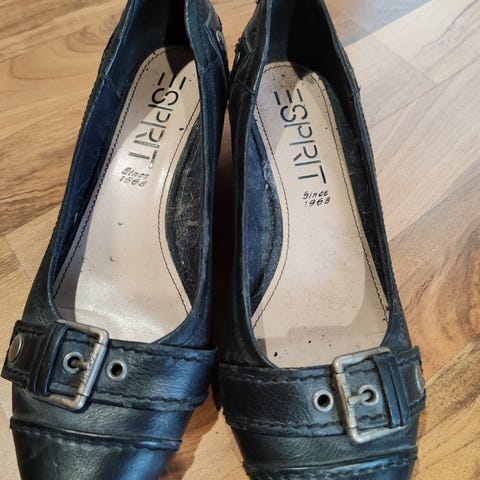 Korkeakorkoiset juhlasandaalit/korkokengät, koko 38. Nahkaa, korot ja korokepohja korkkia.