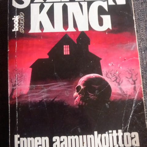 Stephen King Cujo pokkarikirja. Kauhuromaani, suomenkielinen laitos. Kustantaja Book Studio. Pehmeäkantinen kirja, kannessa kuvitus koirasta ja kuusta. Takakannessa lyhyt esittely tekstistä ja viivakoodi.