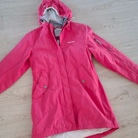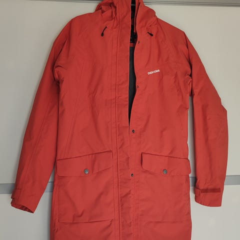 Todella hyväkuntoinen naisten välikauteen sopiva parkatakki. Koko 38 ja on mielestäni hieman kokoaan pienempi. Väri on kaunis lämmin roosa, hieman persikkainen sävy. Takissa on edessä alhaalla kaksi nepparitaskua ja hieman ylempänä taskut, joissa sekä vetoketju että nepparikiinnitys. Hihansuissa nepparikiristys. Helmassa, vyötäröllä ja hupussa kiristysnyörit. Takissa sekä vetoketju että nepparilista suljenta. Vetoketjun vieressä nepparilistan sisällä vetoketjullinen tasku. Takissa on vuorikangas.