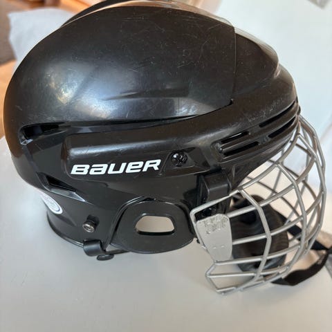 Myydään siisti, käytetty musta Bauer junior jääkiekkokypärä. Koko 6 1/2, 48-53.5 cm. Pehmusteet saa irroitettua.