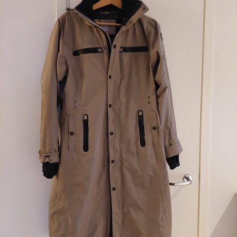 Ratsastussadetakki, koko M. Uusi, laput kiinni.