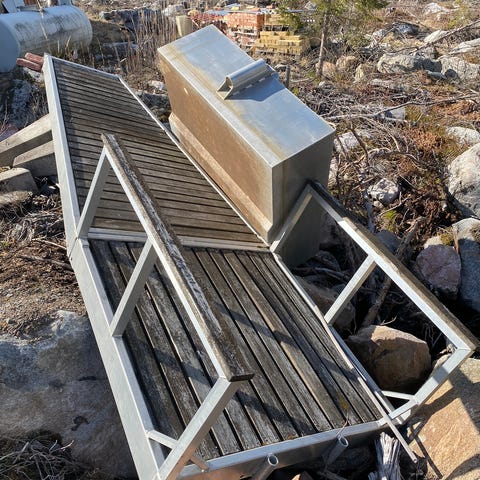 Myydään käytännöllinen teräslautta, jota voidaan liikutella halutessaan traktorilla.