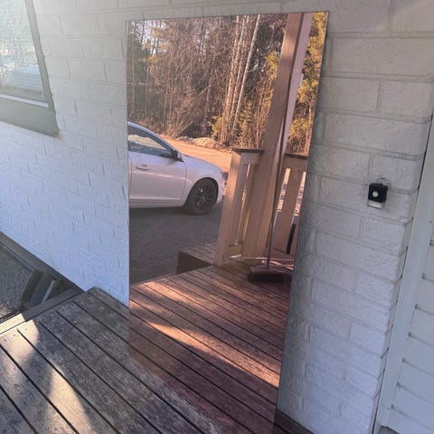 Myynnissä kuvassa näkyvä peili valkoisella kehyksellä. Pelkkä peili eli valot ei kuulu.
