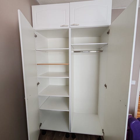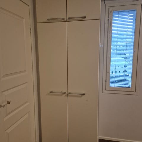 Myydään hyväkuntoinen vaatekaappi, jossa on henkaritanko sekä hylly.