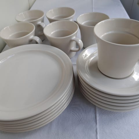 Mielellään myyn kaikki kerralla, mutta kahvikuppeja ja lautasia on mahdollista ostaa myös pienemmissä erissä.