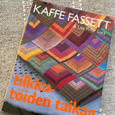 Hakusanat: patchwork, quilt, quilting, Kaffe Fassett, käsityökirja, tilkkutyö, sewing, textile art, craft book, signed book