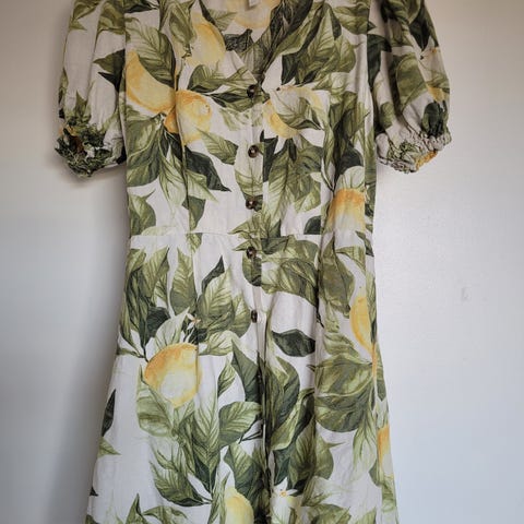 H&M kesämekko, koko 42 (40) Täydellinen 95cm rinnanympärykselle. Valkoinen naisten mekko, materiaalina pellavasekoite. Mekossa on napitus edessä koko pituudelta. Selkäpuolella on joustava smokkirypytys, joka helpottaa istuvuutta. Säädettävät olkaimet. Soveltuu arkeen ja vapaa-aikaan lämpimällä säällä. Vuoritettu.