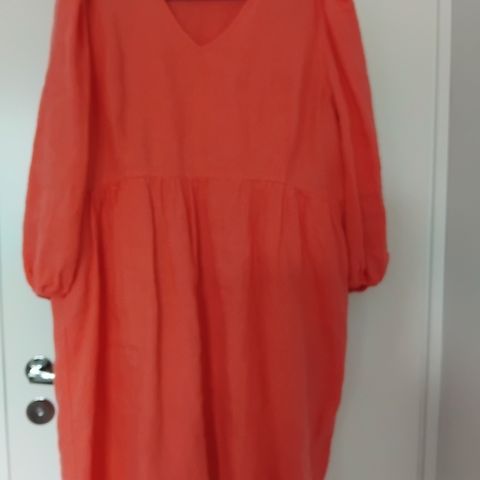 Mekko on värjätty valkoisesta, joten ompeleet ovat valkoiset, muuten väri on tasaisen punainen/oranssi❣️
