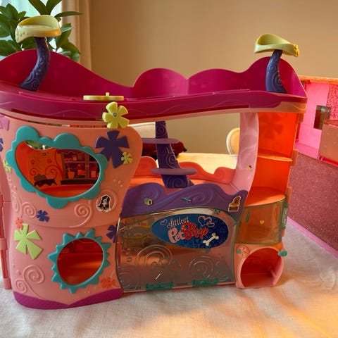 Littlest Pet Shop lemmikkifiguuri ja pieni kantokotitalo. Settiin kuuluu vihreä lemmikkihahmo vaaleanvioleteilla hiuksilla sekä vaaleanpunainen, avattava talo, jossa on turkooseja yksityiskohtia ja kantokahva. Talon sisällä on painettuja kuvia ja tila hahmon säilyttämiseen ja leikkeihin. Sopii pienten lemmikkifiguurien keräilyyn ja roolileikkeihin. Hinta yhteensä 3€. Nouto