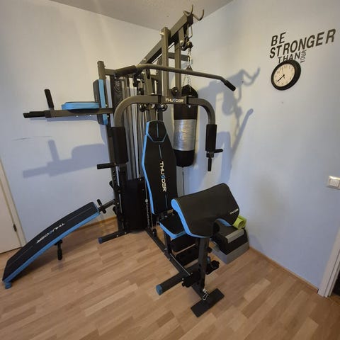 Monitoiminen voimaharjoitteluteline. Telineessä on kiskoilla liikkuva tankoteline, smith, turvaraudat ja useita kiinnityspisteitä levytankoharjoitteluun. Ylä- ja alataljajärjestelmä mahdollistaa vetoliikkeet eri kahvoilla. Telineessä on useita lisäosia, kuten dip-kahvat ja levypainojen säilytystapit. Väri musta/punainen, materiaali metallia. Soveltuu koko kehon lihaskuntoharjoitteluun, kuten kyykkyihin, penkkipunnerrukseen, leuanvetoihin ja taljaliikkeisiin levypainojen kanssa.
