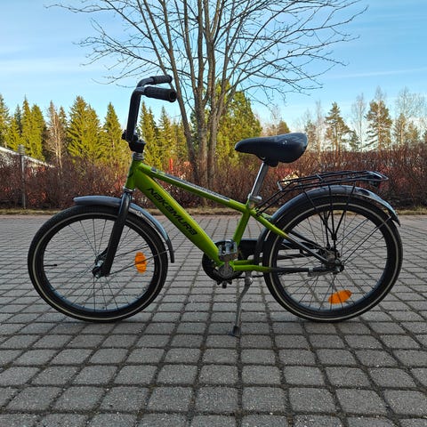 Tunturi 20" lasten polkupyörä. Sininen runko, suora ohjaustanko ja jalkajarru. Pyörässä on lokasuojat ja heijastimet. Sopii noin 20-tuumaisille renkaille mitoitetulle lapselle arkiajoon ja vapaa-ajan pyöräilyyn.