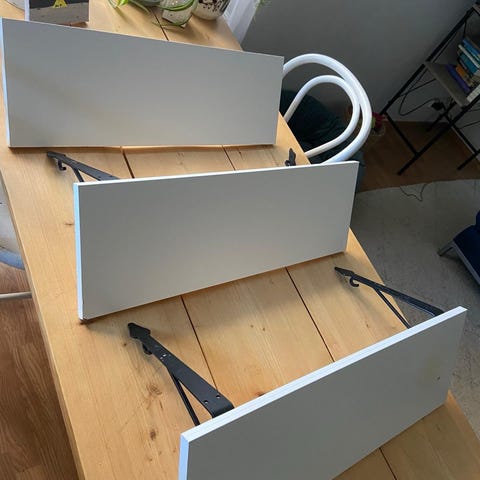 Pienehkö kiinnitettävä puuhylly. Hieman "rimpula" rakenteeltaan, mutta muuten kunto ok. Vain nouto keskustasta.