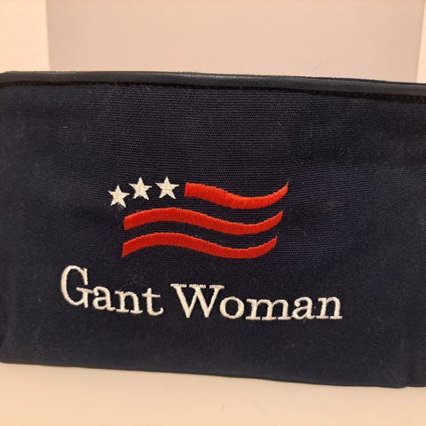 Gant kangaslaukku naisille. Punavalkoinen raidallinen kangasmateriaali ja Gant-logo edessä. Laukussa on kaksi olkahihnaa ja metalliset renkaat kiinnityksissä. Magneettinappi, jolla saa laukun suljettua.