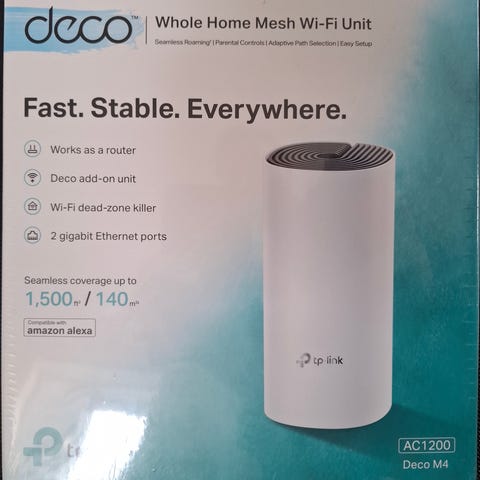 Uusi, avaamattomassa paketissa oleva TP-Link Deco M5 AC1300 on whole home mesh Wi‑Fi -reititin. Laite tukee kaksitaajuusverkkoa (2,4 GHz ja 5 GHz) ja tarjoaa jopa 400 Mbps nopeuden 2,4 GHz taajuudella ja 867 Mbps nopeuden 5 GHz taajuudella. Reitittimessä on sisäänrakennettu kaksikaistainen langaton verkko, MU-MIMO-tuki sekä mahdollisuus käyttää laitetta reititin-, tukiasema- tai access point -tilassa. Laite on yhteensopiva IPv6-protokollan kanssa, siinä on Bluetooth 4.1 -tuki ja erillinen vierasverkko-ominaisuus. Deco M5 -yksikkö on tarkoitettu kodin langattoman verkon kattavuuden parantamiseen ja se voidaan liittää osaksi useamman yksikön mesh-järjestelmää.