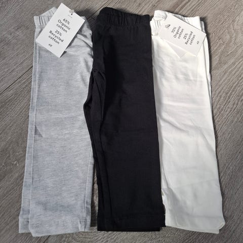Myydään settinä kahdet 3/4-lahkeiset housut koossa 104. Merkki H&M. Tummansiniset käyttämättömät, vaaleanlilat olleet yhden tytön käytössä.