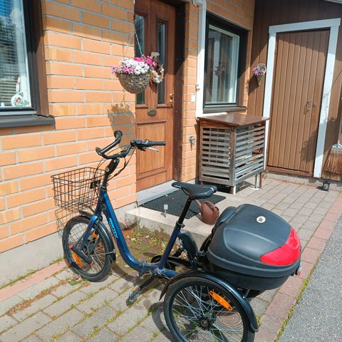 Pyrkijä E470 sähkökolmipyörä. Pyörässä on kolme pyörää, matala runko helpottamaan kyytiin nousua sekä suuri metallinen takakori tavaroiden kuljettamiseen. Sähköavustus ohjataan ohjaustangossa olevasta käyttöpaneelista. Varusteluun kuuluvat etuvalo, lokasuojat ja jalkapolkimet heijastimilla. Soveltuu kauppa- ja asiointimatkoille sekä rauhalliseen ajoon tasaisilla alustoilla. Irrallinen u-lukko.