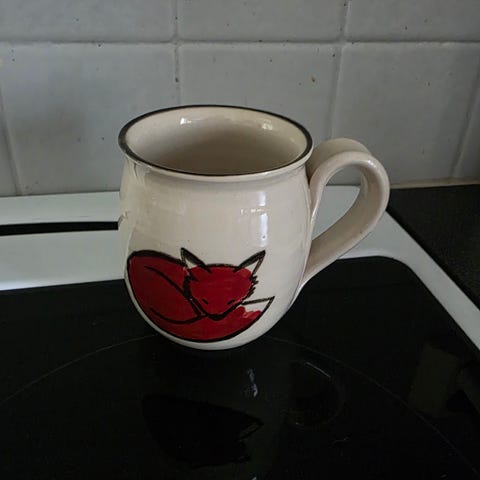 Uusi muki ranskan bulldogin kohokuvalla. Mukin sisäpuoli on viininpunainen. Vetoisuus 4 dl.