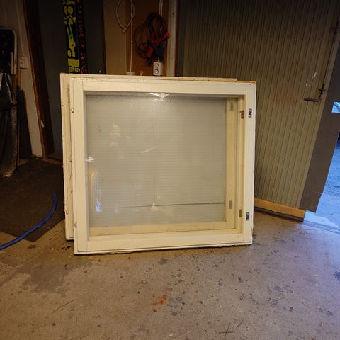 Juuri irroitetut 90-luvun 3 lasiset ikkunat karmeineen, yhteen ikkunaan ei ole karmeja. Kaikissa ikkunoissa sälekaihtimet ja tuuletus ikkunoissa hyönteisverkot.