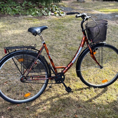 Siisti hyvä kotimainen pyörä vaikka kesken rientoihin. Ekikkä en löydä mitään moitittavaa. Satula ehjä, vaihteet toimii, ( kolme), jarrut toimii, lukko toimii ja pumppu mukaan. Toimitus onnistuu Nakkila Ulvila, Pori