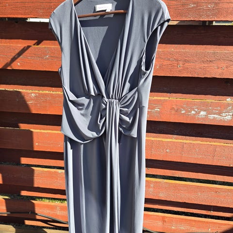 Todella kaunis mekko useilla yksityiskohdilla väreinä mustaa, harmaata ja punaista. Polyesteria 85 % puuvillaa 25 % Koko 42-44. Rinnanympärys 106cm, vyötärö 94 ja mekonpituus olka-helma 96 cm.