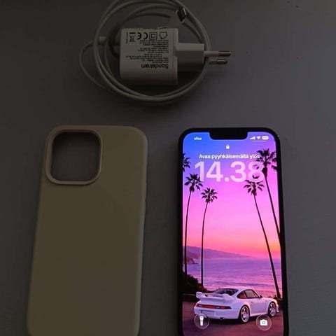 Iphone 13 mini 256GB. Akun kapasiteetti on ”huippukapasiteetti 81%”. Puhelin toimii kuin uusi. Käytön jälkeä toki näkyy mm. puhelimen kulmissa ja näytössä pieni naarmu (kuvissa näkyy hyvin). Kaiken kaikkiaan eivät kuitenkaan haittaa käyttöä vaan näkyvät vain tietystä kulmasta katsottaessa.