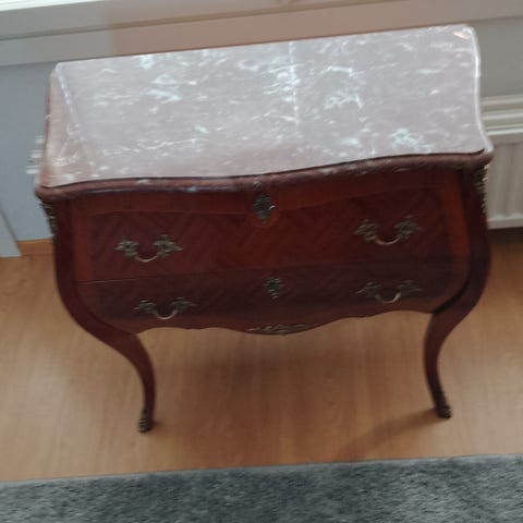 Italialaistyylinen lipasto. Kansi hieman kieroutunut. Muuten lipasto hienossa kunnossa. Korkeus 83cm, kansi 94cm x 43cm.