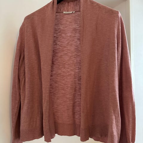 Masain pellavasekoitteinen neuletakki. Kainalo-kainalo noin 50 cm, olka-helma 81 cm. 55% pellava, 24% puuvilla, 21% viskoosi. Moitteeton kunto.