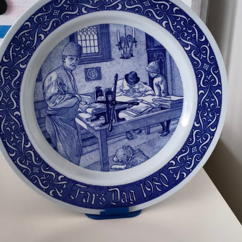 1983 Rørstrandin isänpäiväkeräilylautanen. Taiteilija: Carl Larsson. Halkaisija 21 cm. Uudenveroinen kunto.