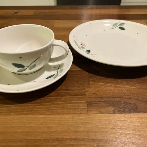 .4kpl kiitettävässä kunnossa olevia Domino-kahvilautasia kauniilla kukkakuviolla