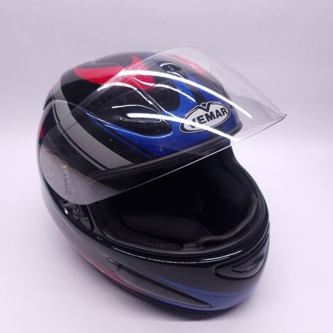 Vemar moottoripyöräkypärä musta keltainen visiirillä